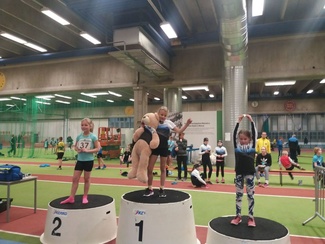 12-vuotiaista mukana olivat Sanni-Veera Viertola, Ida Aarnio ja Kukka-Sofia Lievonen. Sanni-Veeran 60 m taittui aikaan 8,70. Uusi ennätys toi pronssia. Kukka hyppäsi pituudessa uuden ennätyksen 3,61. Idan lajeina pituus ja kuula.